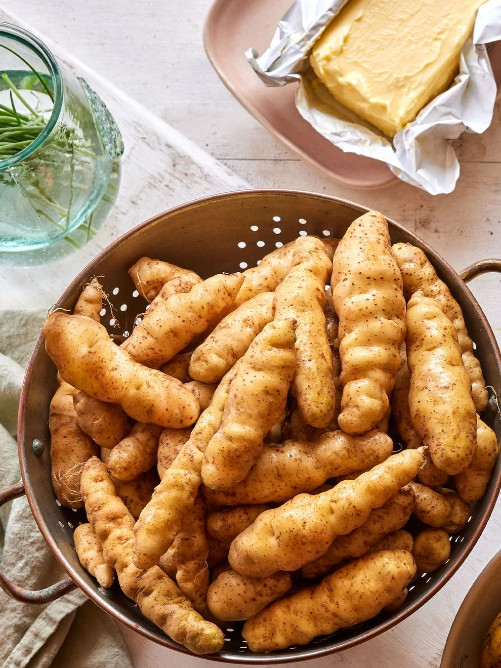 Legendary Native American heirloom potato, rarely encountered in recent years, is here for your delectation. Once cultivated by the Makah tribe in Washington state, rarely found tubers likely originated in South America, stowed away aboard Spanish ships, before migrating to the northwest. Astonishingly high ratio of ultra-flavorful skin to rich, luscious, nutty flesh. Our research gardeners’ favorite potato.